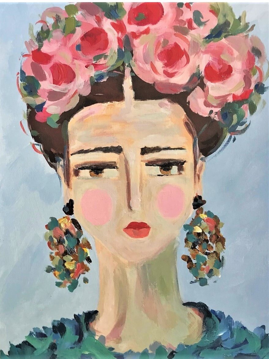 O lucrare inspirată din picturile Fridei Khalo. O viziune a femeii plină de culoare, prospețime și visare.